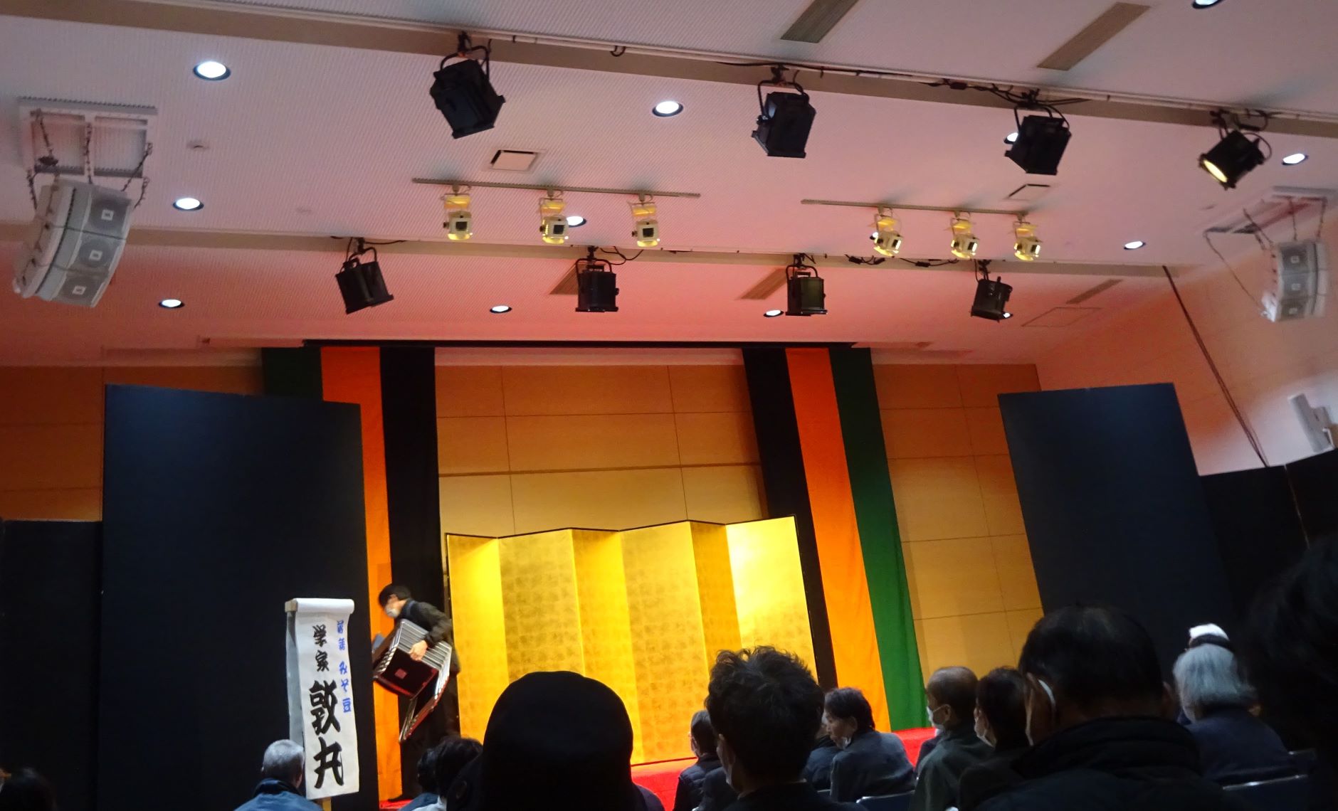 中ホールの公演のたびに思うことですが、客席はフラットでパイプ椅子がたくさん並んでいると舞台がよく見えません。前の人の頭の間から演じる人を見ようとするので集中できません。この落語の公演はサンレディーホールで行われていました。今は廃止。そばを車で通るたびに便利のいいホールだったな、中にたくさんあった照明器具や音響装置など、どうなっているんだろ。