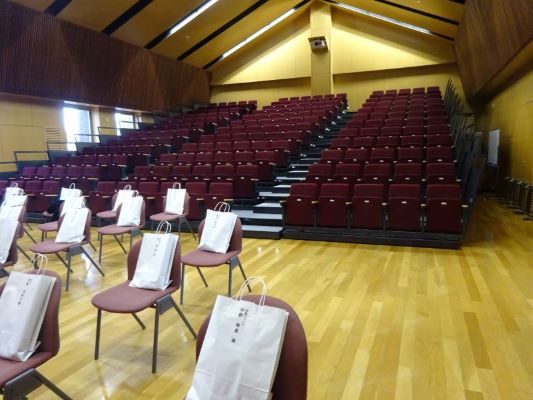 「パレットごうつ」のホールは可動式の椅子です。大田のサンレディホールは舞台も照明も設置されたもっと素敵なホールでしたが、今は市の物置き場です。