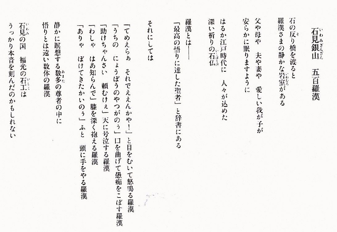 詩集の中から「石見銀山 五百羅漢」を紹介します。